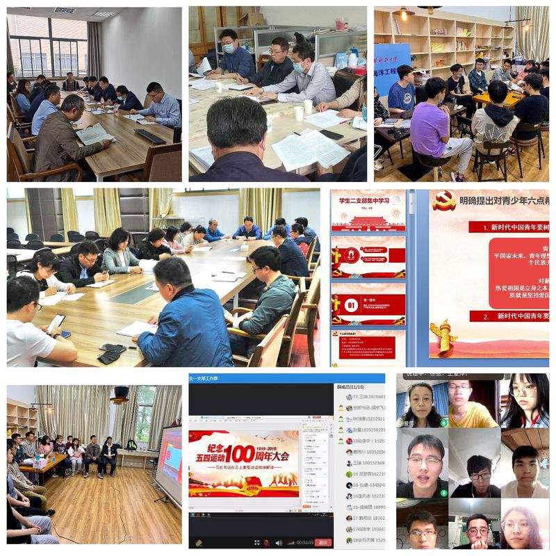 教工党支部集中学习了葛世伦书记在校第八届教代会暨第十届工代会第五次会议上的讲话《凝心聚力 苦干实干 奋力推进学校事业实现高质量发展》和赵乐际同志在十九届中央纪委四次全会上的报告《坚持和完善党和国家监督体系 为全面建成小康社会提供坚强保障》。对于学校面临的疫情防控常态化和事业发展爬坡越坎的双重压力,葛书记鼓励广大师生要认真思考谋划,共同努力奋斗。学生党支部集中学习了《习近平总书记给北京大学援鄂医疗队全体“90后”党员的回信》,习近平总书记在信中提到:“青年一代有理想、有本领、有担当,国家就有前途,民族就有希望。”广大青年也一次次用行动证明,新时代的中国青年是好样的,是堪当大任的。学生们在重温《习近平总书记在纪念五四运动100周年大会上的讲话全文》后,深刻认识到五四精神的精髓,认识到历史的接力棒又再一次落在了广大青年手上。