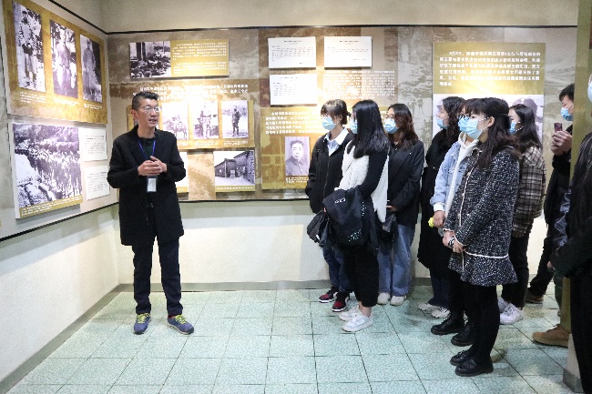 踏进韦岗战斗陈列室,映入眼帘的是一幅幅史实资料,伴随着沈小宝馆长翔实的讲解,全体同学仿佛置身于韦岗伏击站当中,切实感受到新四军挺进苏南,首战告捷激励人心的历史场面。