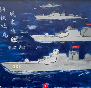 决赛过程中,每队派一名代表上台讲解介绍各海报及摄影作品,从不同层面展现作品对船舶元素和红色元素的崭新创意融合。作品中包括乘风破浪的军舰,手挥红旗的士兵,向国旗敬礼的海军军人等等,从作品中可以感受到各位参赛选手对于比赛的用心,对船舶文化的深入理解,和对党、对祖国的无限热爱。同学们也通过作品展现了对我校“江海襟怀、同舟共济、扬帆致远”的“船魂”精神的理解。