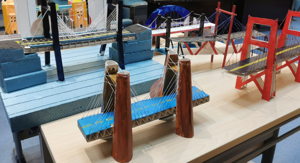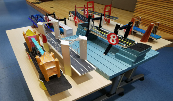 人类交通需求的快速增长,大跨度,高难度桥梁的建造,使桥梁技术含量大大增加。同学们利用已学的力学知识,进行创新构思,从而设计出各种优秀的作品,从中充分感受到结构的美。桥梁美从小桥流水的诗情画意,直接成为技术美学中的一枝独秀。现代桥梁越江河跨海湾,使天堑成通途。这些桥梁凝结了同学们创造性的智慧、才能和力量,极富新意,渗透出浓烈的时代气息,使人耳目一新。
