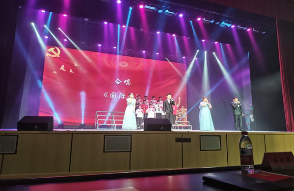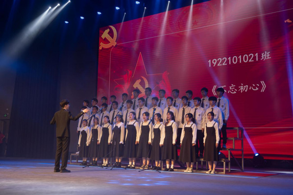 合唱曲目《国际歌》气势恢宏,将歌声化作祝福,向党致敬,激励着广大青年要矢志不移为共产主义奋斗终身。