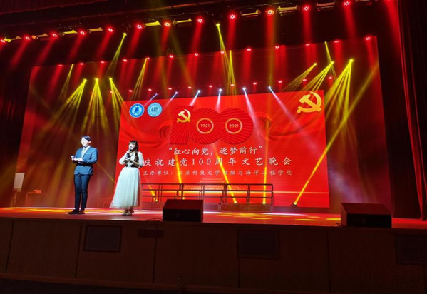红船映初心,江潮再扬帆。在这充满着红色和激情的六月,船海莘莘学子载着红色小船传承红色的基因,铭记党的奋斗历程,致以华美歌声。江苏科技大学船海学院以此次晚会献礼党的百岁诞辰,久秩党旗红,亿众续长征。