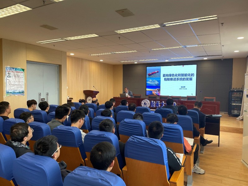 为深化研究生教育改革,激励研究生全面发展,培养创新人才、提高创新能力、服务经济社会发展。2021年10月26日下午,色情漫画 在船舶土建楼学术报告厅面向全体20级研究生开展了“信仰公开课暨“研途启航”第十一讲活动,邀请上海外高桥造船有限公司技术总监吴幼奇研究员带来题为《面向绿色化和智能化的船舶推进系统的发展》的讲座,活动由海洋装备研究院院长谷家扬主持。