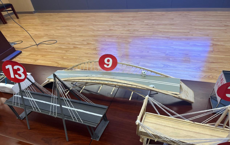 本次比赛历时1个半月,经过前期报名、初赛选拔,共有二十支队伍进入到决赛。港航教研室的黄贵标老师和翟金金老师作为评委出席了本次比赛。在主持人简短的开场过后,各组选手依次上台对自己的作品进行介绍与展示。在这些作品中,我们不仅能够看到参赛选手们为他们的作品倾注的心血,更能看到选手们不拘一格的创新思维能力。无论是将拱形设计与斜拉桥结合,还是仅靠别压穿插搭建出的廊桥承重结构,亦或是将两座桥梁特点相结合再加入自己的设计,参赛选手们的作品无一不在向大家展示着当代大学生对于桥梁建筑领域的学习热情和创新想法。