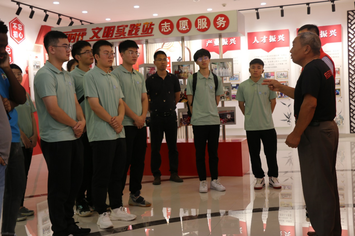 嶂山村不仅有闻名遐迩的非物质文化遗产,更有为党和国家贡献青春的英雄党员,在嶂山村党建厅内,曾参加过援越抗美的71岁老党员吴长怀给实践团成员讲述了他的入党心路历程和改革开放以来嶂山村所经历的振兴变化。作为前辈,他教导新时代青年大学生要珍惜十年寒窗苦读换来的大学学习机会,要听党话、感党恩、跟党走,努力学好专业知识,立志将青春献给祖国的建设。实践团成员姜唯同学感叹“这是我第一次近距离学习老一辈党员的奋斗故事,他身上的红色精神点燃了我心中的红色火种,我辈青年应当接过前人手中的火炬,赓续红色血脉,为民族复兴贡献智慧和力量。”