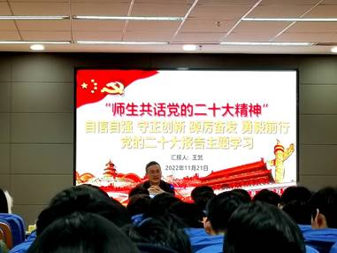 为深入学习宣传贯彻党的二十大精神,引领广大青年学生坚定理想信念,切实把思想和行动统一到党的二十大精神上来。色情漫画 于11月23日晚在船建楼402举办“师生共话党的二十大精神”主题活动,辅导员王武及2021级船舶与海洋工程专业全体同学参加。