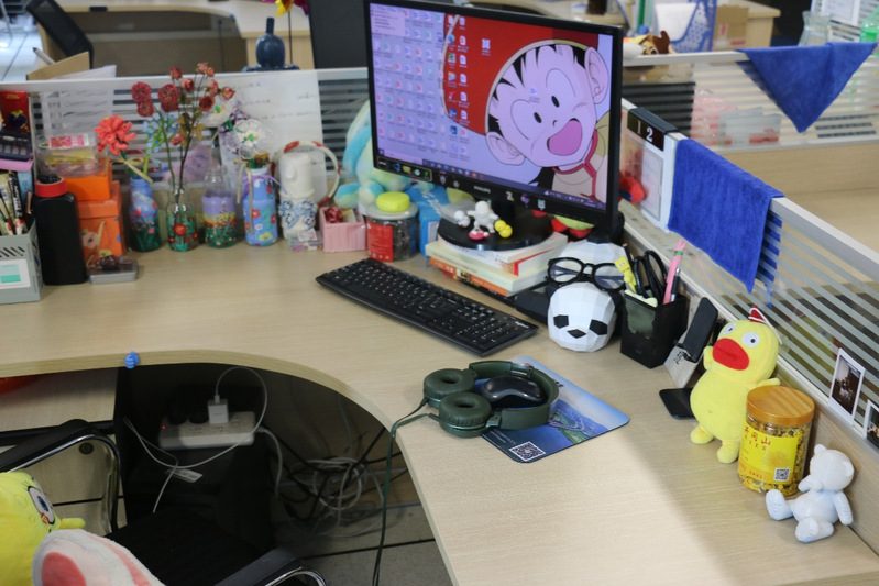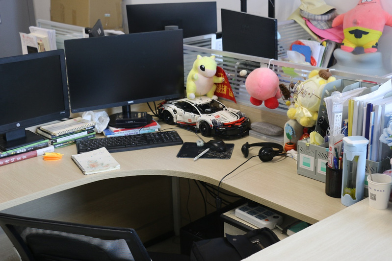 研究生办公室的同学们积极响应,精心布置,绿树红花映衬着整洁的书架,书香伴着花香沁人心脾,书本和电脑等学习用具在桌面上有序摆放。
