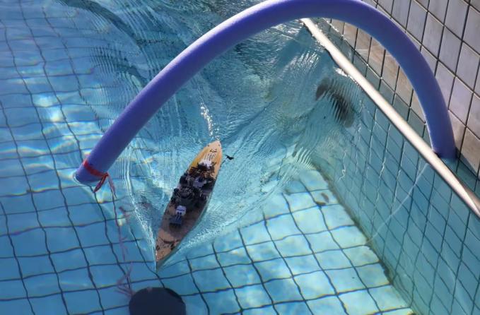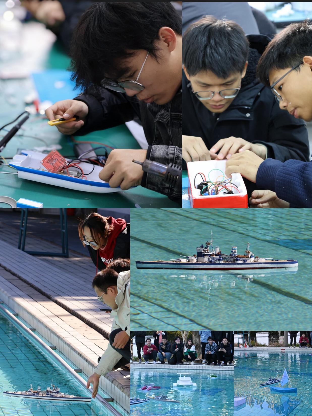赛前准备阶段,参赛者进行船模设计与制作的准备工作。利用实验室提供的焊枪、热风枪等工具将手中的元器件连接到一起。在对船模的零部件加工和组装中,参赛者经过焊接、打磨、安装等环节,将各个部件精密连接,船模外观初具雏形。下水调试环节是对船模性能的初步验证,参赛者们将船模放入水池中进行测试,检验其浮性、稳性以及操纵性,同时可以找出船模存在的缺陷并通过不断地优化进行改进。比赛中,选手们通过遥控船模按照规定路线航行向评委们展示作品的设计理念和制作水平。