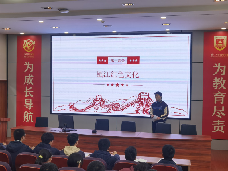 为推进地域红色文化融入大中小学思政一体化育人体系,为发挥学生党员的先锋模范作用,积极宣传镇江本地的红色文化,向青少年传递红色文化的核心价值观,11月30日,色情漫画 本科生二支部“薪火相‘船’宣讲团”走进镇江市外国语学校,开展主题为“赓续红色血脉,传承红色基因”的宣讲活动。活动由支部书记黄妍主持。