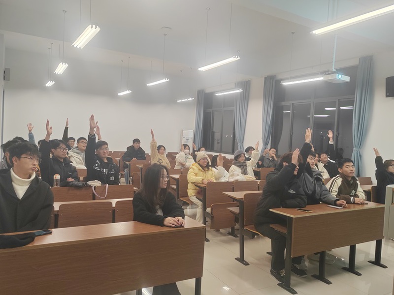 活动还设置了飞花令环节,同学们根据主持人所出飞花令题目,在激烈讨论过后队伍依次说出符合题目要求的诗词。现场气氛热烈而温馨。学生们在互动中相互启发,相互交流,共同感受着诗词艺术的魅力,让整个活动更加生动有趣。