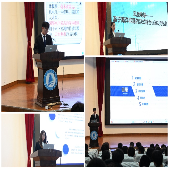 本次大赛分为模型制作组和概念设计组两个赛道,经过前期宣传、选拔和初赛筛选,共有16支队伍进入决赛。决赛现场,参赛选手通过多媒体演示、视频介绍和模型展示的方式分别从研究背景、设计思路、作品创新性和实用性等方面对作品进行了汇报,由评委老师对其作品进行提问与评比打分。选手们在场上尽情展现风采,认真听取评委老师提出的意见与建议,现场观摩的同学认真观看比赛汲取知识。评委老师鼓励同学们要学会发散思维,多去思考船海装备的实际工程问题和前沿发展趋势,要善于在发现问题中寻求创新。