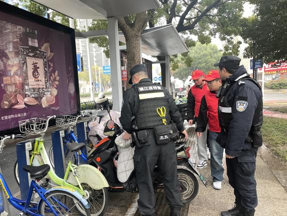 3月5日,镇江巡特警润州区三茅宫朱方大厦支队,大学生志愿者跟随巡特警的脚步,在润州广场的街道上开展义警巡逻,监督有无违法乱纪的行为,对于街道上没有停在指定区域的非机动车,志愿者们主动将其移动到指定的安全区域,获得了支队警察和过路民众的一致赞扬,营造了遵纪守法的良好社会风气。