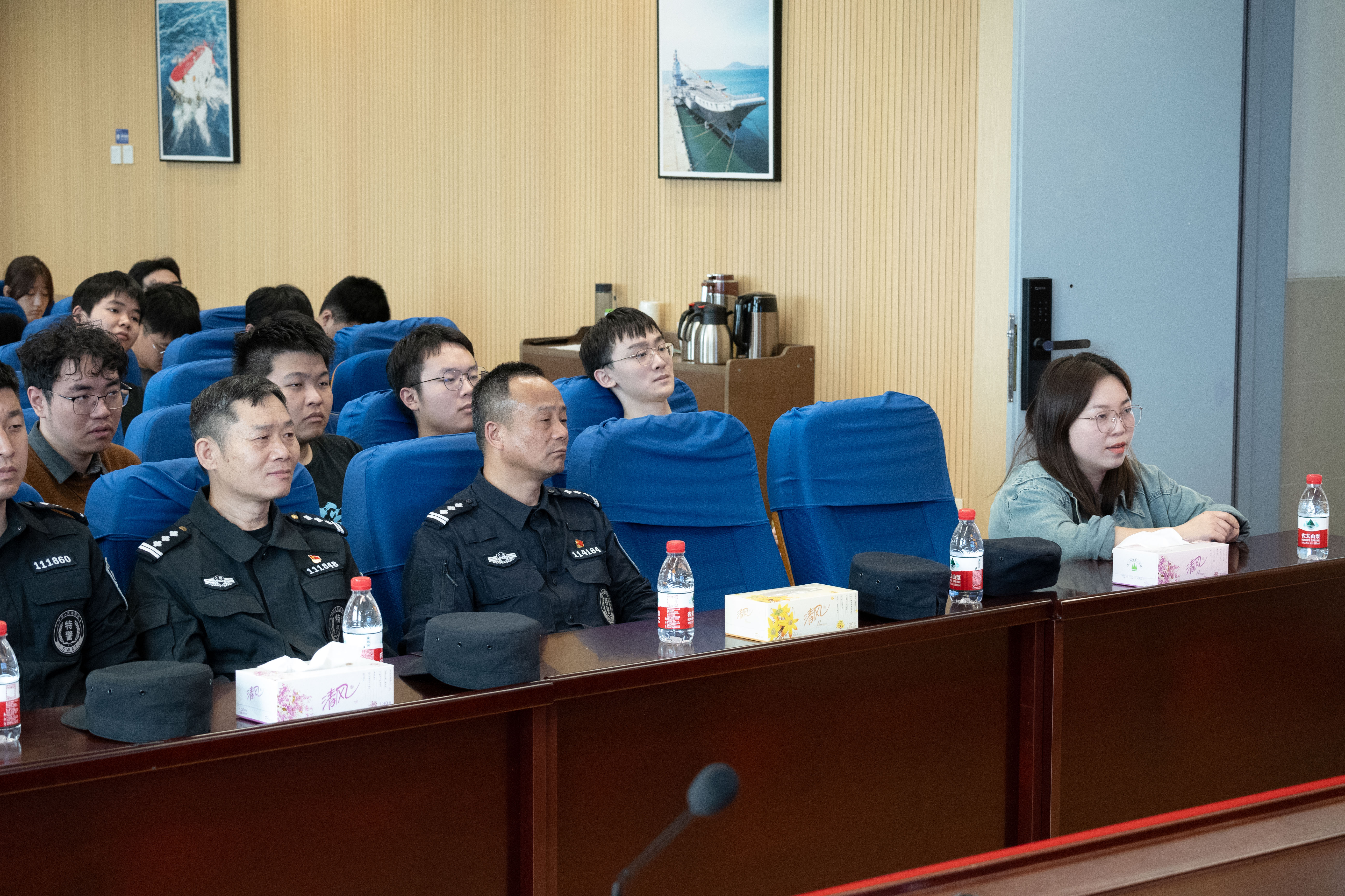 讲座之余,巡特警支队向同学们展示了部分高科装备,并邀请同学们体验互动。同时,鼓励船海学子未来不仅在船舶科技行业发光发热,更要做到进一步增强国家安全意识,坚定维护国家安全的信心和决心,更加努力为国家繁荣发展、安全稳定特别是国家海防建设的发展贡献自己的力量。