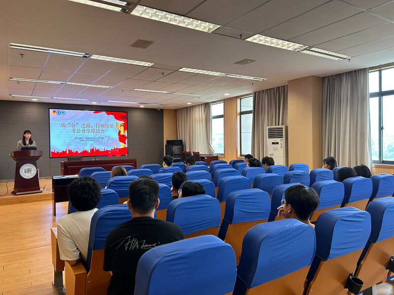 从“岁暮天寒”到“春回大地”,范杰同学向同学们讲述了自己考公路上的心路历程,并分享了备考过程中所积累的宝贵经验,他强调必须要抱着“背水一战”的决心扎下根去复习、做题,踏踏实实走完整个备考过程。王洁涵同学在交流分享中首先回顾了自己的备考历程,她强调要制定合理的学习计划和坚持执行的重要性,随后详细介绍了自己在备考过程中如何平衡各科目的复习,如何高效利用时间进行学习。最后她向在座的同学们传授了三点“宝贵要求”:牢牢把握碎片化时间学习;反复刷真题卷;多摸索、多思考短板模块。高绪兵同学从报考流程、岗位选择、地区差异等方面详细介绍了考公考编常见的问题,其次,他从自身报考角度出发详细阐释了“考的分高不代表一定稳,拉开分差才是关键”,为在座的同学们提供了备考的独特视角。
