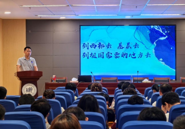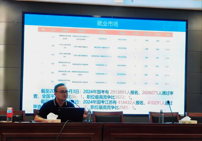 活动伊始,巫书记分析了学院毕业生的就业现状和择业方向,给同学们详细介绍了今年用人单位的招聘需求、线上线下招聘会和重点单位的情况。通过分析当今经济社会的发展形势,号召同学们多了解社会大环境,努力提升能力以应对激烈的市场竞争,并根据自己的实际情况,找准定位,为社会发展作贡献。