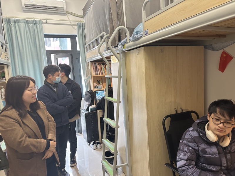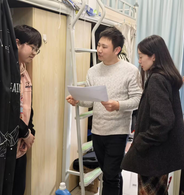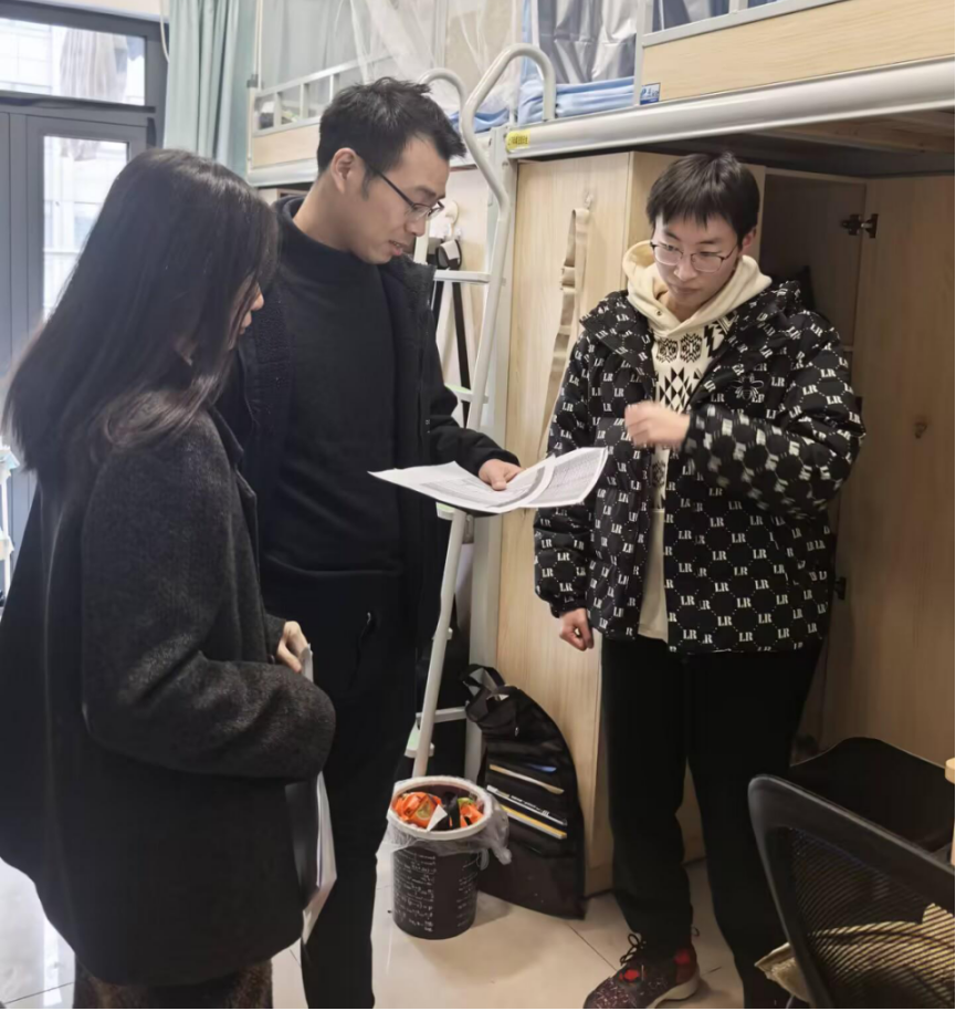 “蓝途”一站式学生社区的组织下,本次活动紧扣德育、智育、体育、美育、劳育五大维度,全方位关注学生发展。德育铸魂:党委副书记巫蓉与同学们互动交流,倾听思想动态,鼓励学生坚定理想信念,积极参与党团活动和社会实践,“大学不仅是学习知识的殿堂,更是锤炼品格的熔炉”。智育夯基:针对学生提出的课程难点、科研困惑,辅导员和班主任现场“把脉开方”,结合专业特色提出个性化学习建议,助力学业提升。体育强身:走访中,老师们特别关注学生的体育锻炼情况,提醒同学们合理规划作息,强健体魄才能为报国蓄能。美育润心:在宿舍文化布置环节,老师们点赞学生自创的书画作品和绿植装饰,鼓励大家通过“蓝途”社区即将推出的美育工坊,提升审美素养。劳育赋能:宿舍检查中,学院重点引导学生践行劳动教育,对卫生整洁、垃圾分类优秀的宿舍给予表扬,并将联合“蓝途”社区开展“最美寝室”评选活动,让劳动教育融入日常。