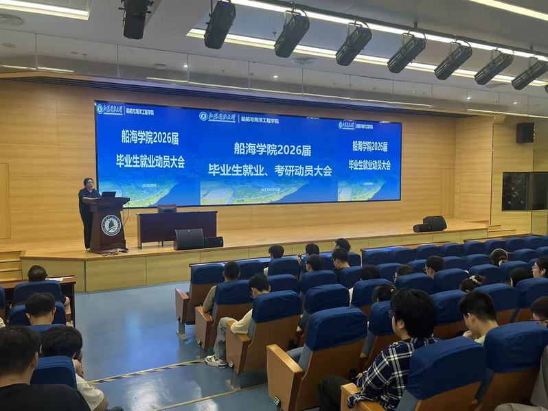 大会伊始,巫蓉副书记围绕当前考研状况与就业形势展开深度分析。她结合全国及江苏省考研报考人数变化、录取率趋势,以及船舶与海洋工程领域的行业发展动态,用详实的数据为同学们勾勒出清晰的竞争图景。同时,巫蓉副书记分享了往届优秀毕业生考研成功上岸、优质就业的多项典型案例,既有跨校考取知名高校船舶专业研究生的奋斗故事,也有进入中船集团、中远海运等行业龙头企业的就业范例。这些鲜活的案例不仅让同学们直观感受到行业机遇,更有效缓解了大家的焦虑情绪,坚定了冲刺考研、积极就业的信心。