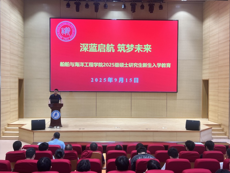 9月15日下午,启航深蓝 初见致远研究生新生入学教育大会在行政楼100号报告厅举行。学院副院长程勇教授以新时代船海人的使命与担当为题,从学科发展历程、科研平台建设、研究生个人发展三个维度展开分享,勉励新生既要扎根海洋工程技术前沿,也要心怀国家重大战略需求。他特别强调:“研究生阶段要培养批判性思维,在解决'卡脖子'技术难题中实现个人价值。”
