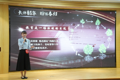 以亲身经历讲述感人至深的育人故事,黄妍以自身1400多个日夜的辅导员工作经历为主线,用三个生动案例诠释了“立德树人”的深刻内涵。她以“船锚”喻“德”、“船桨”喻“人”、“灯塔”喻“树”,将“立德树人”的教育理念融入生动案例,用真挚情感诠释了“为党育人、为国育才”的使命担当,引发全场强烈共鸣。