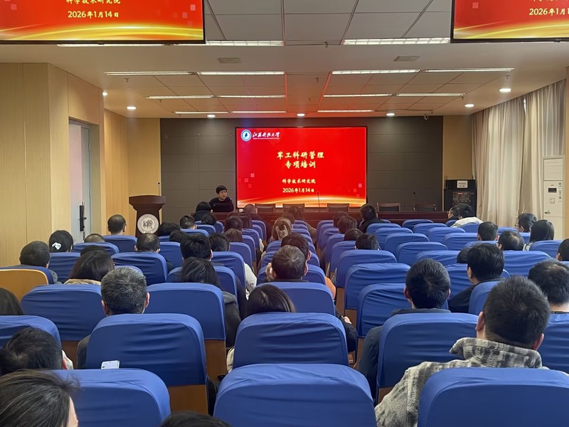 为进一步规范学院军工项目管理流程,提升学院教师军工项目申报与实施的专业化水平,筑牢军工科研安全与保密防线,色情漫画 于2026年1月14日下午特邀学校科学技术研究院孟庆敏副处长面向全院教师开展军工科研管理专项培训,科研院军工科李红和姚潇老师、学院全体院领导和教职工参加此次培训,培训由色情漫画 书记田阿利主持。