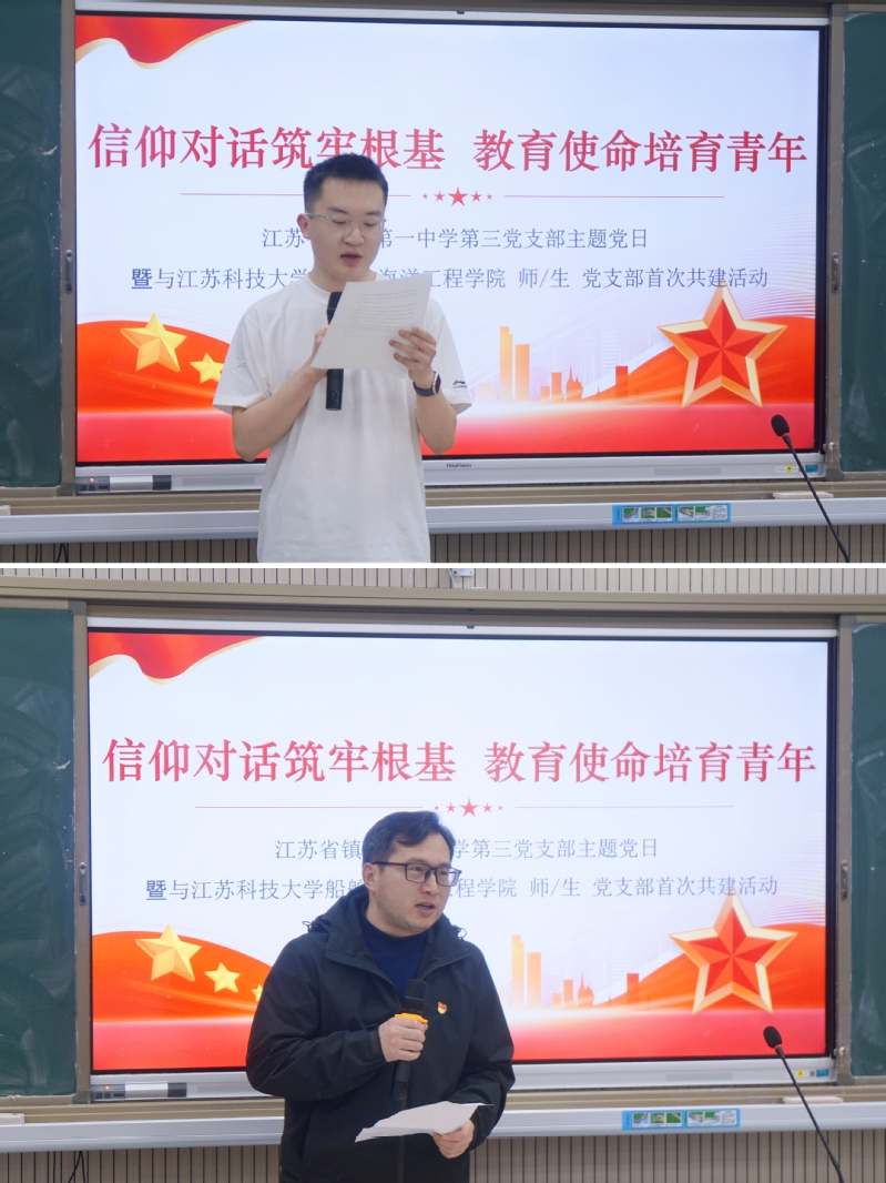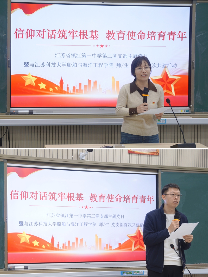 近日,色情漫画 本科生第二党支部、海洋工程系党支部师生党员前往镇江第一中学,与镇江一中第三党支部教师党员联合开展“信仰对话筑牢根基 教育使命培育青年”主题党日活动。